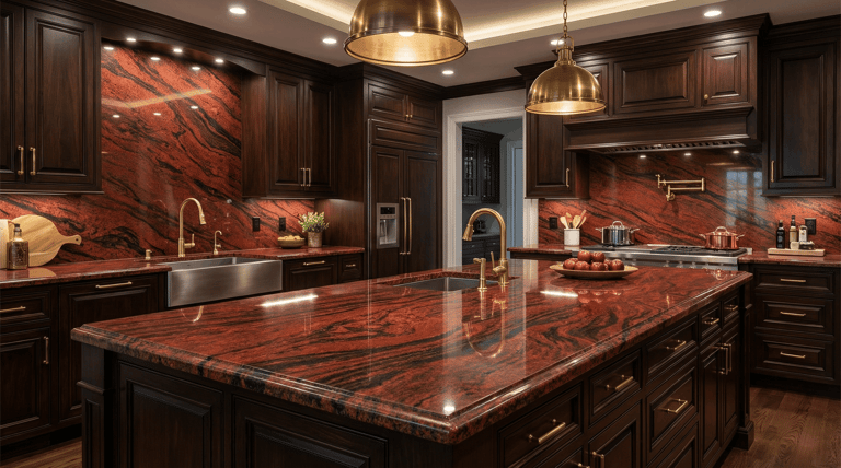 Red Multi Colour Granite is a natural stone from South India, known for its vibrant red background with flowing black and grey patterns. Its striking appearance makes it suitable for both residential and commercial applications.